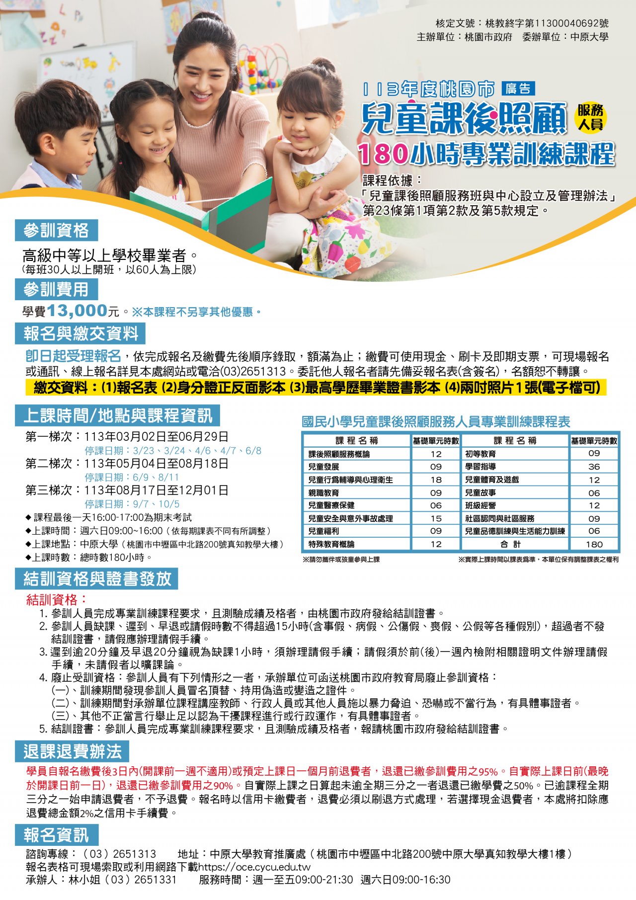 轉知中原大學課照服務人員180小時課程